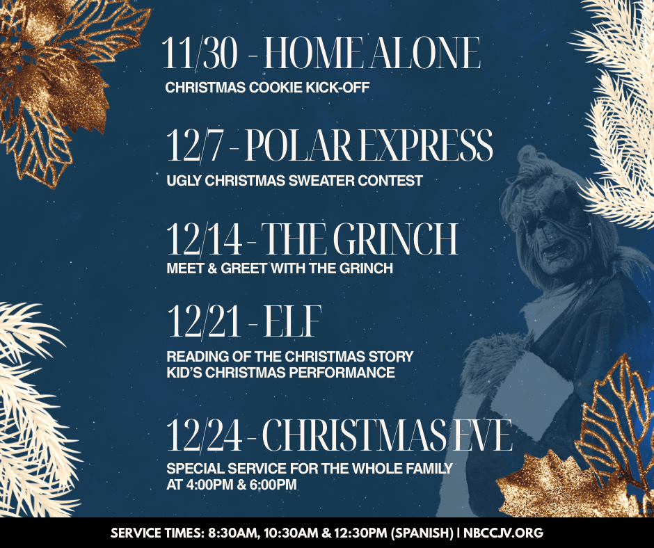 This series is designed for the whole family—whether you’ve been part of NBCC for years or you’re joining us for the first time. From The Grinch to Home Alone, from Elf to The Polar Express, we’ll discover how the themes in these beloved films point us back to the heart of Christmas: Emmanuel—God with us.